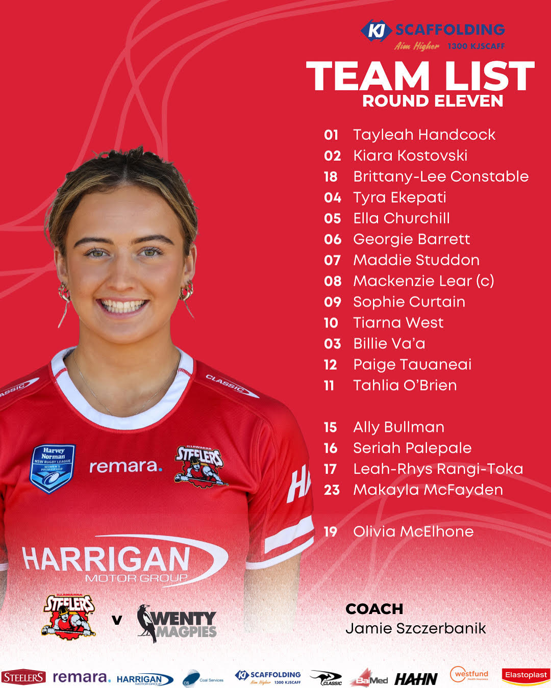 Round 11 – Team List brought to you by KJ Industrial Scaffolding